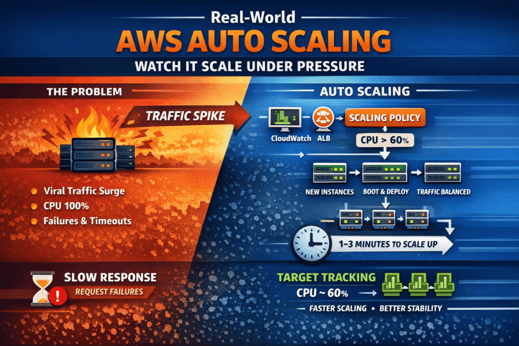 In this guide, Iโll explain Auto Scaling in the simplest way possible and show you how it works with real traffic โ just like in production.